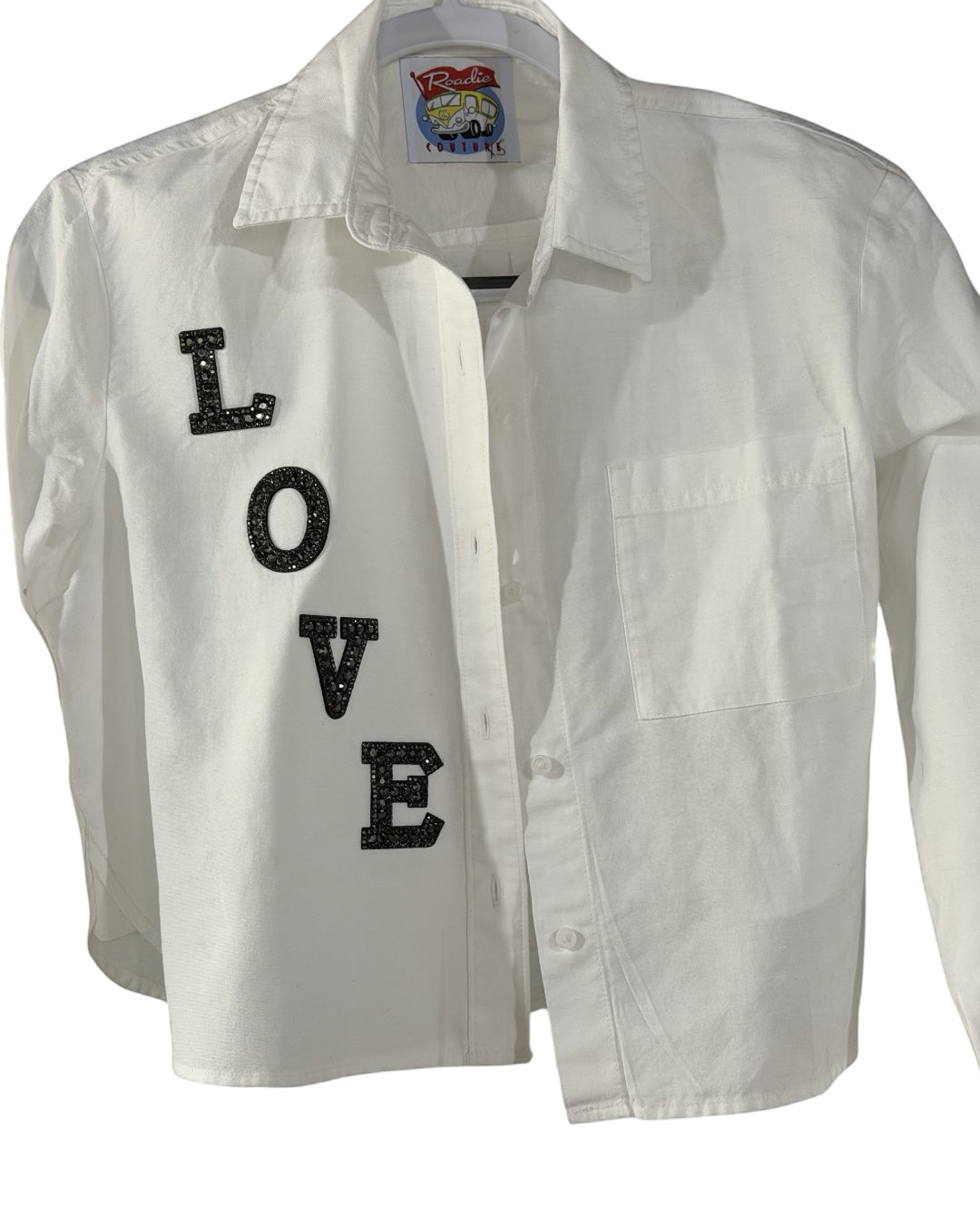 Embellished Love White Boyfriend Shirt