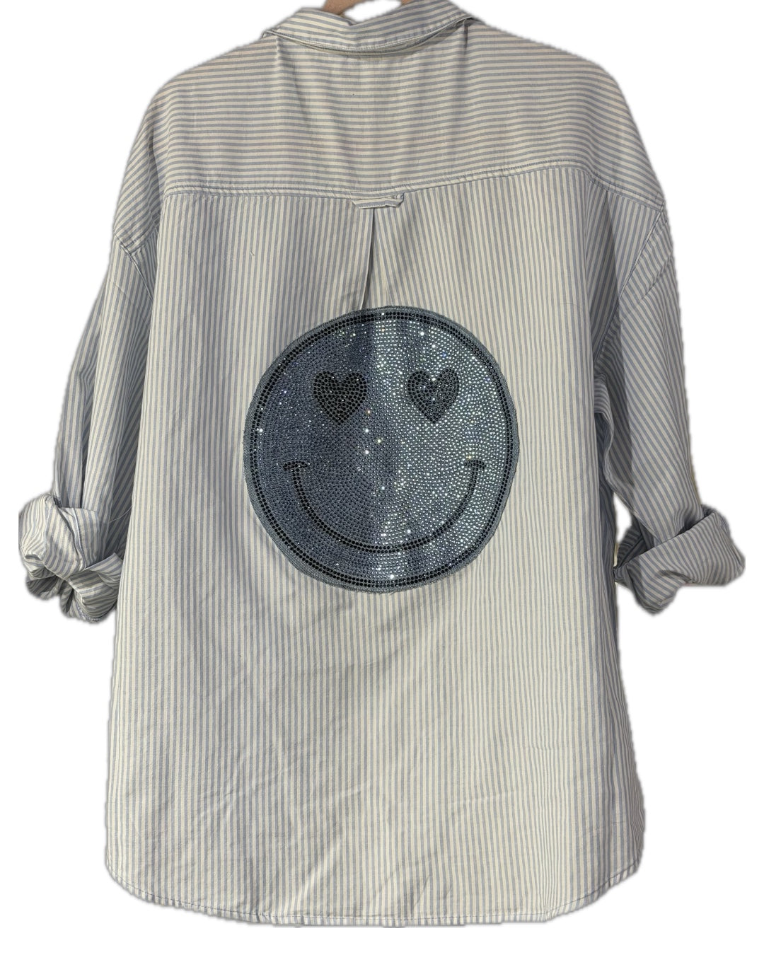 Your effortless statement layer. This oversized blue and white striped button down features a relaxed fit, chest pocket, and lightweight feel that is perfect for beach days or everyday styling.