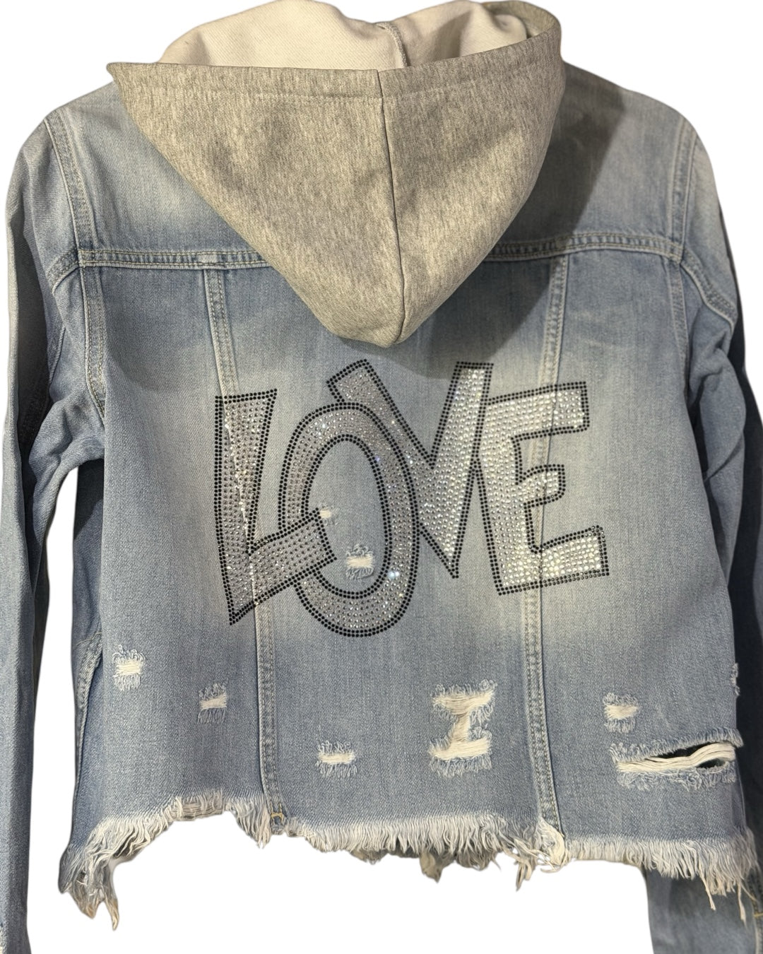 Hooded Silver Abstract Love Jean Jacket